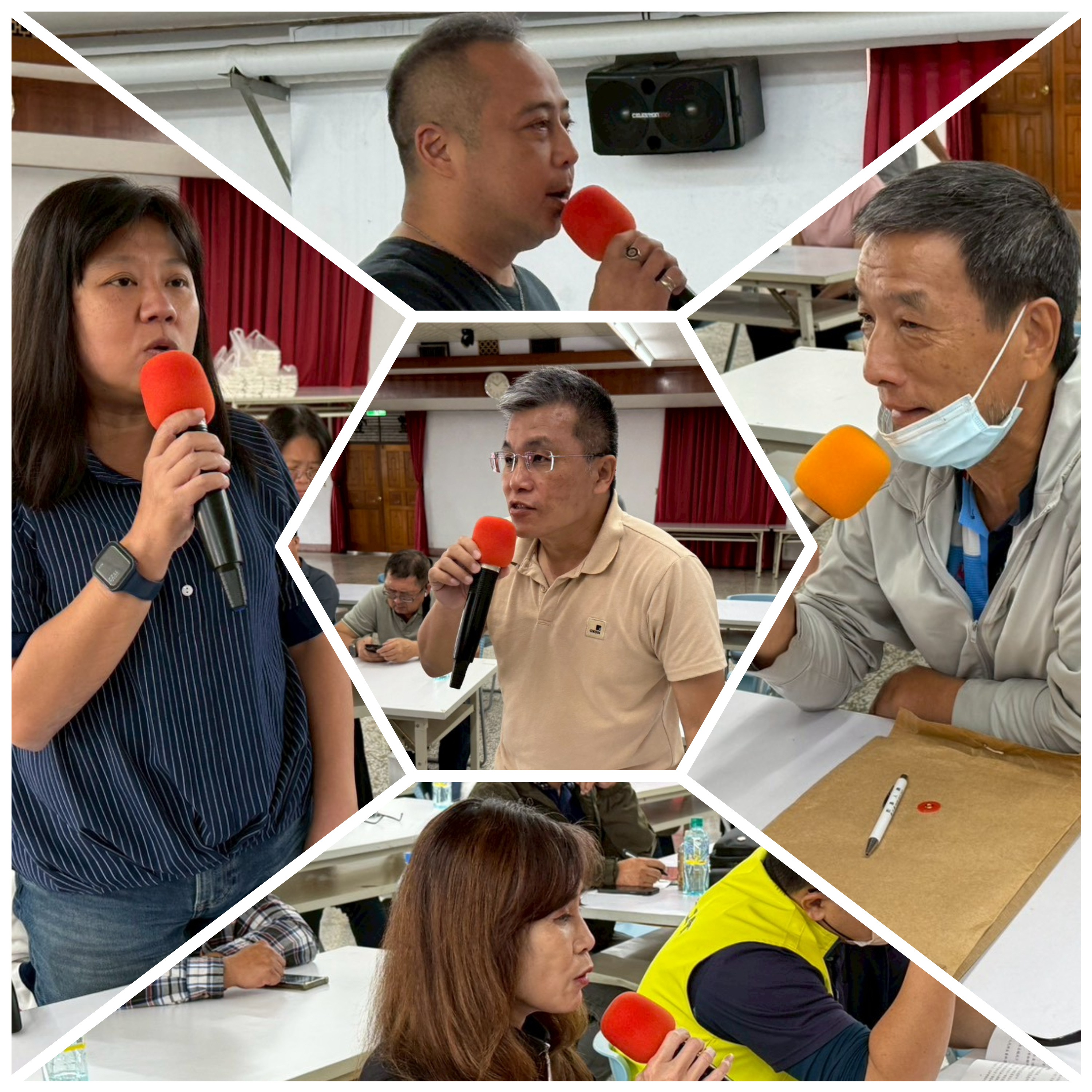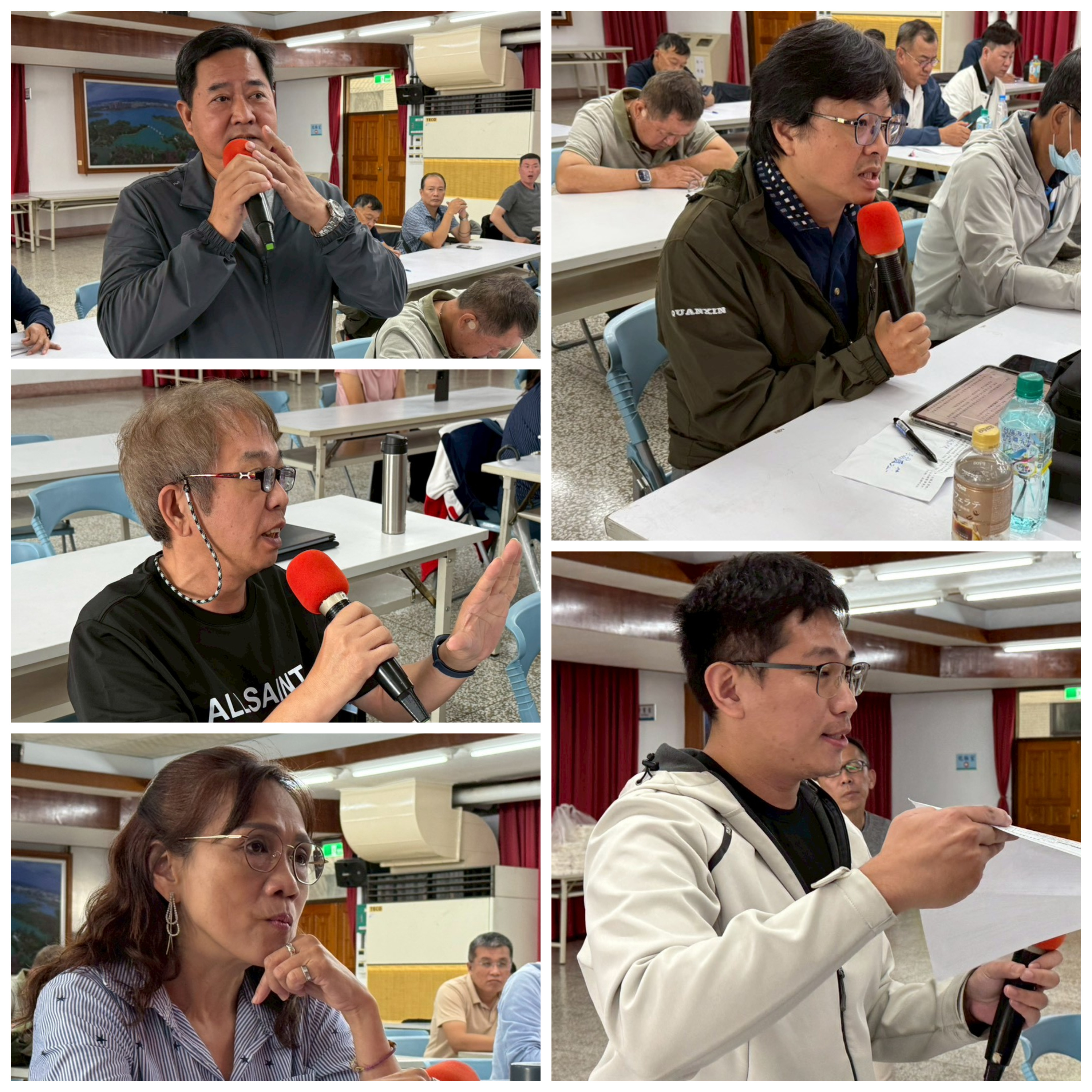 ▲理事李品慧(左)、勞工董事藍秉修(上)、八分會理事長蕭瑞榮(中)、常務理事呂多默(右)、理事盧美倫(下)發言。