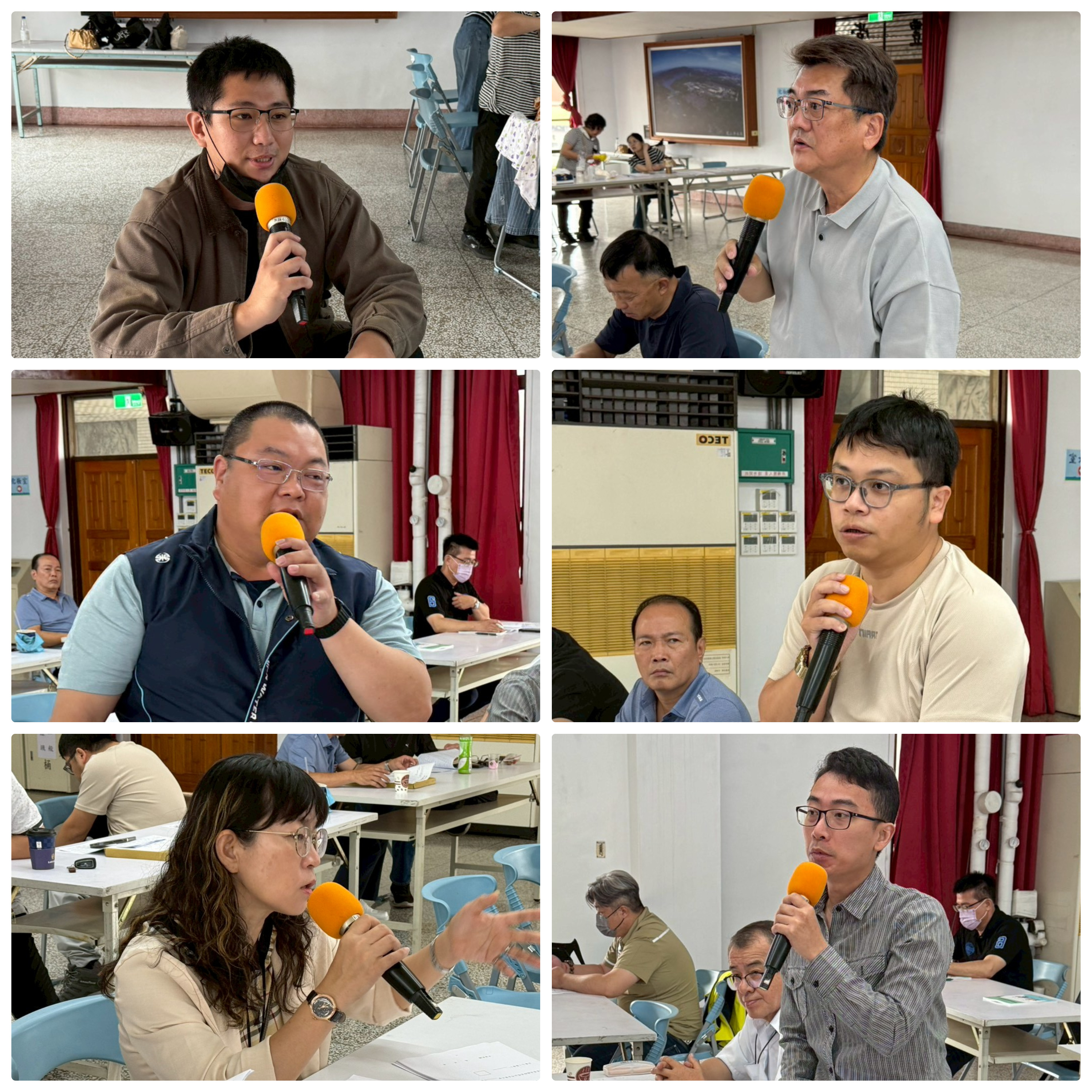 ▲北工分會理事長吳藶翃(左上)、勞工董事譚猷翰(左中)、南工分會理事長李姿瑩(左下)、常務理事蔡健萍(右上)、八分會理事長吳誌峰(右中)、總處分會理事長張天奕(右下)發言。